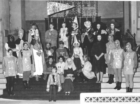 The second set of photos show a production of Joan of Arc in St James Church, Clacton. Rosemary and her twin sister Carol are the ‘soldiers’ standing on the stone steps to the right.