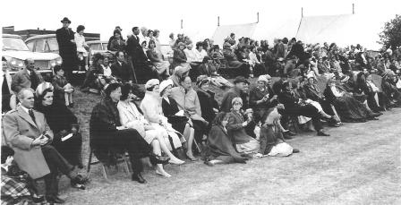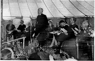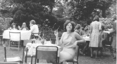 The third is of an occasion when the ‘juniors’ served the ‘seniors’ with tea on the front lawn at Washford. Anne Weatherly and possibly Rachel Townsend are at the far table and Mary Noble and Sally Sheringham are ‘waitresses’.